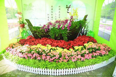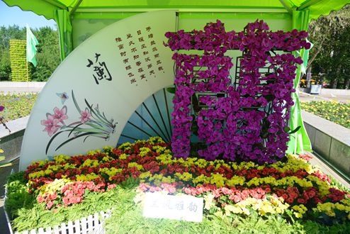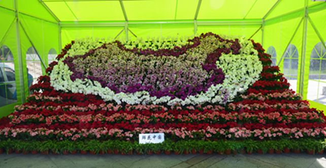來到花卉展現(xiàn)場,走進(jìn)用四色絹花搭建而成的迎賓花門,首先映入眼簾的是一座高為5.3米的五色草盛世花籃,花籃中滿是盛開的鮮花,寓意著黑河人民在市委、市政府的帶領(lǐng)下,生活盛滿著希望、盛滿著喜悅、盛滿著美好、盛滿著幸福?!盎ê1庵邸敝黝}展區(qū)以船為展示依托,寓意著黑河這座生態(tài)濱水城市正乘風(fēng)破浪,駛向幸福港灣。自古以來,中華民族就喜愛素淡、雅致、潔凈的風(fēng)格,推崇忠貞、廉潔、質(zhì)樸、堅(jiān)韌的情操,而蘭花正是這種風(fēng)格和情操的和諧統(tǒng)一,“蘭風(fēng)雅韻”主題展區(qū)繁體“蘭”字由500株花卉編插而成,寓意市委、市政府注重城市精神塑造,積淀城市文化內(nèi)涵,為各項(xiàng)事業(yè)蓬勃發(fā)展注入強(qiáng)大動(dòng)力。“鮮花中國”主題展區(qū)是本屆花卉展的主展區(qū),花卉造型置于中國龍雕塑臺(tái)階下,寓意中國東方巨龍的騰飛,更祝福偉大祖國繁榮昌盛。“綠色單車”主題展區(qū)以我市便民公共自行車為載體,倡導(dǎo)綠色環(huán)保、生態(tài)宜居的城市理念,是我市民生項(xiàng)目的園藝性標(biāo)志。