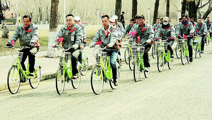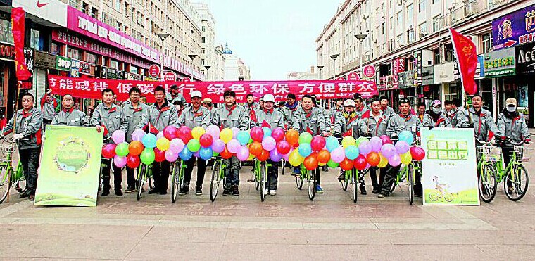 為迎接4月19日“世界自行車日”和4月22日“世界地球日”的到來,4月18日,黑河市公共自行車管理中心組織開展了“低碳環(huán)保,綠色出行”騎車宣傳活動。員工們身著統(tǒng)一服裝,沿市區(qū)主要街道騎行公共自行車,呼吁廣大群眾加強(qiáng)環(huán)保意識,節(jié)能減排,綠色出行,共同保護(hù)黑河美麗的家園。 據(jù)了解,我市實施的便民公共自行車項目以其綠色、環(huán)保受到廣大市民喜愛,目前,辦卡用戶已達(dá)2萬余名。文/攝 本報記者 魏立波