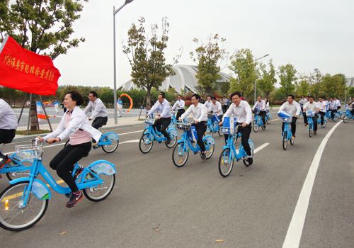 2006年,淮安舉辦了首屆全民健身運(yùn)動(dòng)會(huì),在全省引起較大反響。本次第二屆全民健身運(yùn)動(dòng)會(huì)由市委市政府主辦,市體育局等7部門承辦,設(shè)4個(gè)部28項(xiàng)次比賽,將有一萬多人參加此屆運(yùn)動(dòng)會(huì)。為全方位體現(xiàn)“全運(yùn)會(huì)”的特點(diǎn)及宗旨,運(yùn)動(dòng)會(huì)采用了市民大力支持、廣泛參與的自行車環(huán)市行作為開幕式方案,真正體現(xiàn)了“全民健身全民參與”和“全民健身你我同行”的主旨。開幕式結(jié)束后,淮安市領(lǐng)導(dǎo)與萬余名市民共同參加騎自行車環(huán)市行活動(dòng)。市領(lǐng)導(dǎo)們帶頭騎行在隊(duì)伍的最前面,全市近百個(gè)單位共萬余人組成113個(gè)方隊(duì),緊跟在市領(lǐng)導(dǎo)方隊(duì)后騎行。自行車隊(duì)伍所到之處一片歡騰,整齊干練的著裝,精神抖擻的風(fēng)貌,意氣風(fēng)發(fā)的笑臉……祥和而熱鬧。而公共自行車的加入更是為活動(dòng)增添了一道亮麗的風(fēng)景線,藍(lán)色的倩影在壯大的隊(duì)伍中顯得格外亮眼。引來了許多群眾駐足觀看,大家用掌聲和歡呼為隊(duì)伍加油助威。