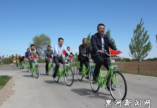 5月23日上午,到黑河參加運(yùn)營會(huì)議的常州永安公共自行車運(yùn)營有限公司各分公司的負(fù)責(zé)人興致勃勃,在運(yùn)營公司負(fù)責(zé)人的帶領(lǐng)下,開展騎行“小綠”到璦琿活動(dòng)。30余公里的長途路程,20名騎行者并沒有感覺到勞累,“黑河的天藍(lán)樹綠水美,空氣清新,我們好久沒體驗(yàn)到這種生態(tài)環(huán)境了?!贝蠹疫咈T邊拍,陶醉在一路美景中。