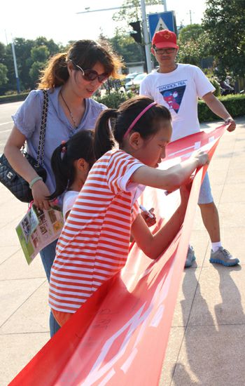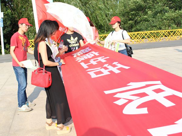 當日下午3時,實踐小隊騎著由永安公司提供的綠色公共自行車從河海大學(xué)北門出發(fā),途經(jīng)紫荊公園、中華恐龍園、新北萬達廣場。期間實踐小隊,進行了發(fā)放宣傳單、百人簽名等活動,截止晚上8點,活動圓滿結(jié)束。