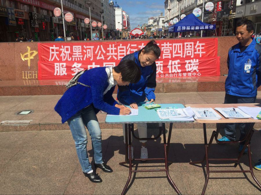 黑河公共自行車從2012年運營以來,經(jīng)過全體工作人員的不斷努力和改進,以及監(jiān)管單位的大力支持,得到了黑河市民的信任和好評,但是我們的工作還有許多待改進的地方,這次活動也展開了回訪活動,衷心的希望得到黑河公共自行車客戶給我們提寶貴的建議和意見。我們將繼續(xù)已飽滿的熱情和激情秉承永安的宗旨“服務(wù)中國、引領(lǐng)低碳”。