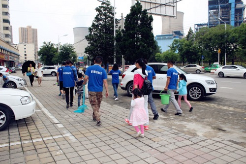 在父母的陪同下,孩子們化身“小綠”的守護(hù)神,其中最小的一位只有三歲,但是認(rèn)真擦車(chē)的模樣,感染了很多路人,并紛紛為他們點(diǎn)贊。