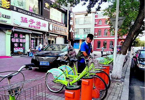 一排排綠色的公共自行車整齊地排列在街道站點(diǎn),90個(gè)借站點(diǎn)覆蓋了黑河市區(qū)的大街小巷,人們騎行綠色環(huán)保自行車更是城市的美麗風(fēng)景。公共自行車的出現(xiàn)不僅代表著黑河低碳環(huán)保生活的理念,還體現(xiàn)了我市的文明程度。公共自行車借用過程簡單,使用便利,自運(yùn)營以來,受到廣大市民的青睞,逐漸在市民口中有了自己的昵稱“小綠”?!靶【G”有一群“家人”,承擔(dān)著管理、保障、維修公共自行車的工作,為人們使用“小綠”提供保障。