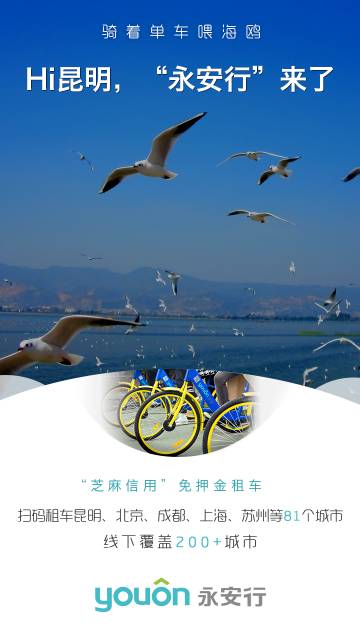 永安行預(yù)計(jì)在春城投放50000輛共享單車,全面覆蓋昆明一環(huán)以內(nèi)各大商圈、辦公、學(xué)校區(qū)域,今后大家的出行需求小安承包啦~~