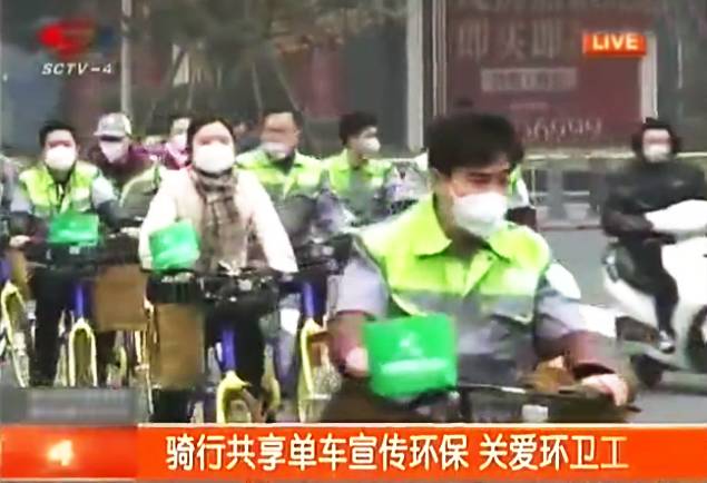 近日有這樣一個公益行動,志愿者們騎上街頭巷尾的永安行共享單車,騎行十公里給沿路碰上的環(huán)衛(wèi)工人們,贈送口罩。