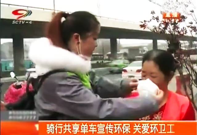 志愿者們說放棄以往的私家車,騎著自行車做這樣的一件事,感覺是身體力行的為環(huán)保做了實實在在的一點貢獻,騎了這么長時間有點累,但是心里有一種力量使人不知疲倦心潮澎湃。志愿者:“這一天下來遇到很多這樣的環(huán)衛(wèi)工,感覺他們確實很辛苦,所以我們利用今天一天的時間,爭取把我們更多的口罩送給更多的環(huán)衛(wèi)工人