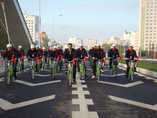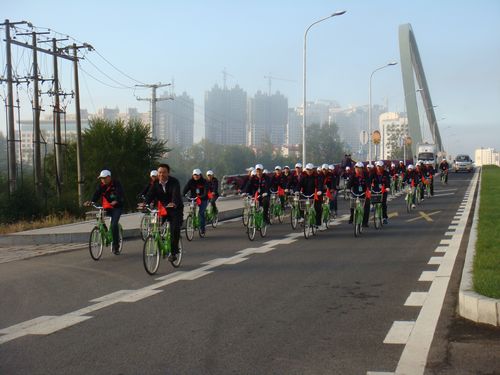 黑河市公共自行車全體員工為迎接第五屆“世界無車環(huán)保日”舉行騎行活動。倡導市民“綠色出行,低碳生活,美化城市,改善交通”。