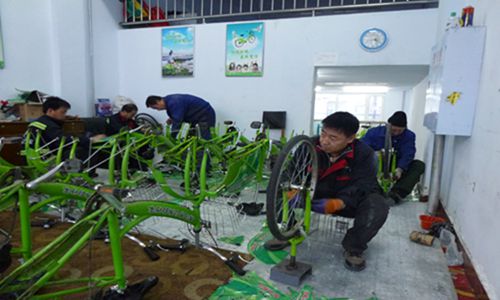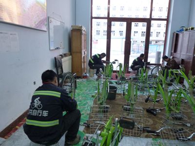 黑河公共自行車冬季停止運(yùn)營(yíng)后,留下10名有維修自行車技術(shù)的員工,將2230輛自行車逐一進(jìn)行檢修保養(yǎng),入庫(kù)存放,到明年春季根據(jù)天氣情況適時(shí)投入使用。下圖為維修人員正在認(rèn)真地工作